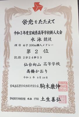 先日開催された宮城県高等学校新人大会水泳競技の結果をご紹介します!