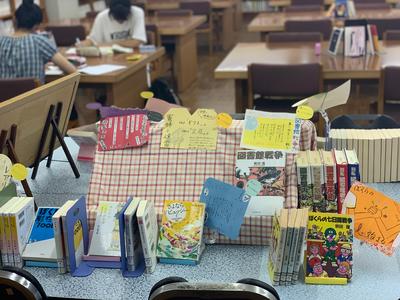 手作り感があり、かつハイクオリティーなポップの数々。図書委員、本校生徒の手作りです。